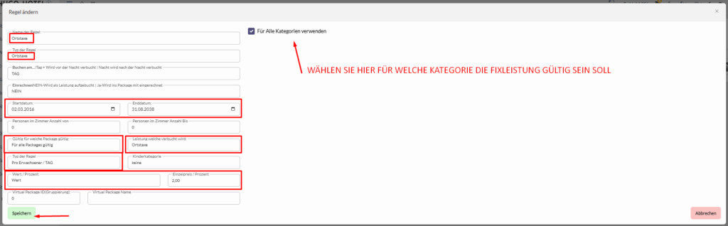 Geben Sie nun Ihre gewünschten Daten ein und legen Sie fest, für welche Kategorien diese Fixleistung gültig sein soll.