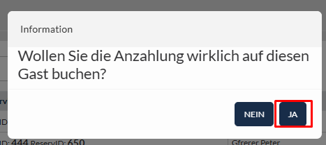 Um eine Anzahlung von der Reservierung auf den Gast umzubuchen, haben Sie 3 Möglichkeiten.