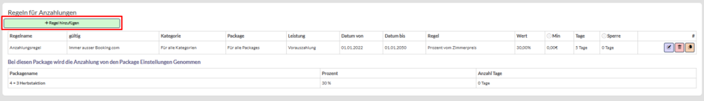 Bei „Gültig für welches Package“ können Sie die Anzahlungsregel explizit auf ein gewünschtes Package schalten.