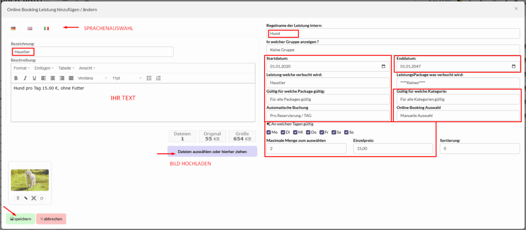 Sie haben die Möglichkeit auf der Booking Engine beliebig viele Zusatzleistungen zu hinterlegen, welche der Gast zur jeweiligen Einheit buchen kann.