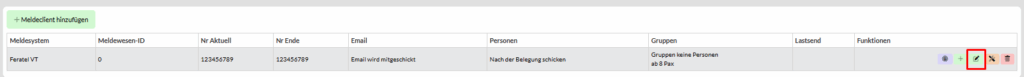- Klicken Sie beim Meldeclient auf „bearbeiten„