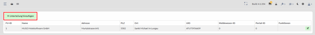 Mit einer Firmen Unterteilung ist eine Hotel Typ ID verknüpft. Mittels der Hotel Typ ID ist es Ihnen möglich mehrere Standorte einer Firma nicht nur fürs digitale Meldewesen (Trennung der einzelnen Zimmer), sondern auch im Portal, bei sämtlichen E-Mail-Vorlagen und buchhalterisch ein und dieselbe Leistung mit den jeweiligen Fibu – Nr. zu trennen.