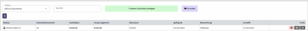 GUTSCHEIN IM SYSTEM ANLEGEN