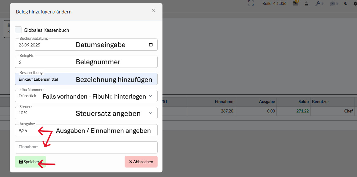 Eintrag im Kassenbuch hinzufügen