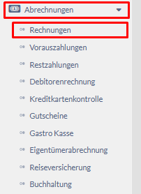 Klicken Sie im Menü auf der linken Seite auf Abrechnungen – Rechnungen, um eine Rechnung zu suchen.