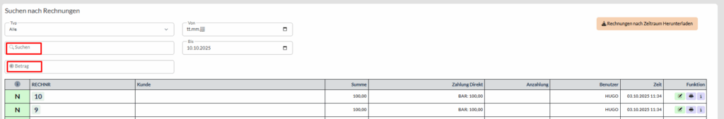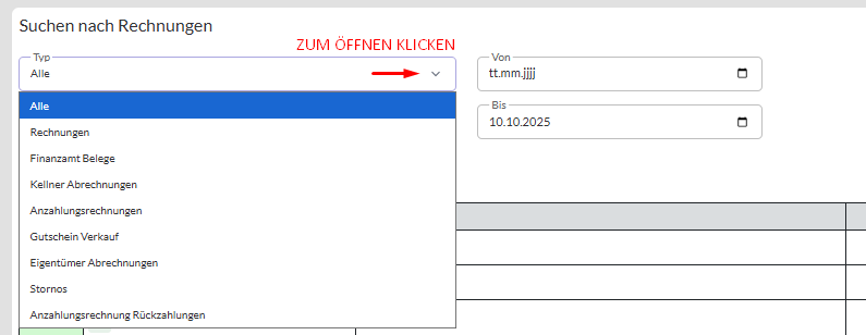 Es werden Ihnen alle innerhalb dieses Zeitraumes erstellten Rechnungen angezeigt.