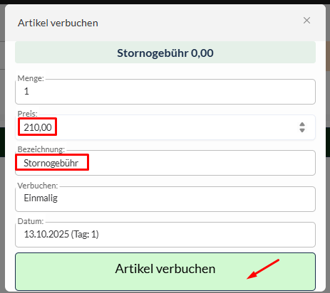 z.B.: Stornogebühr gemäß AGB für die Stornierung von ….. - WIE wird bezahlt? → Zahlweg auswählen