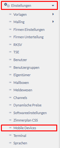 - Klicken Sie im Menü auf den Reiter „Einstellungen – Mobile Devices„.
