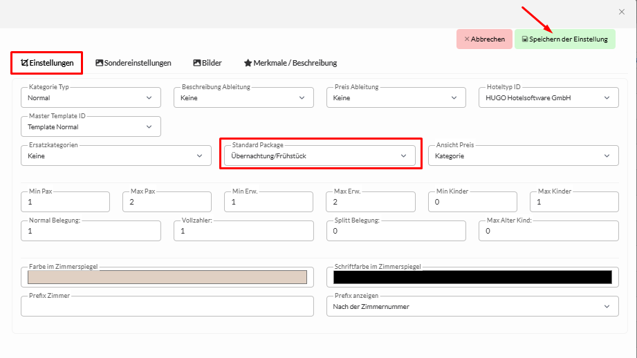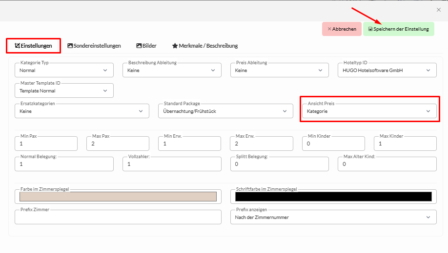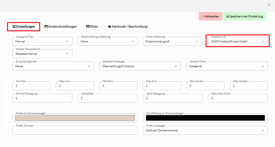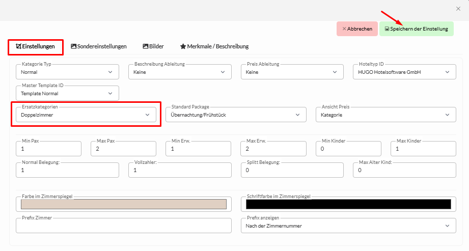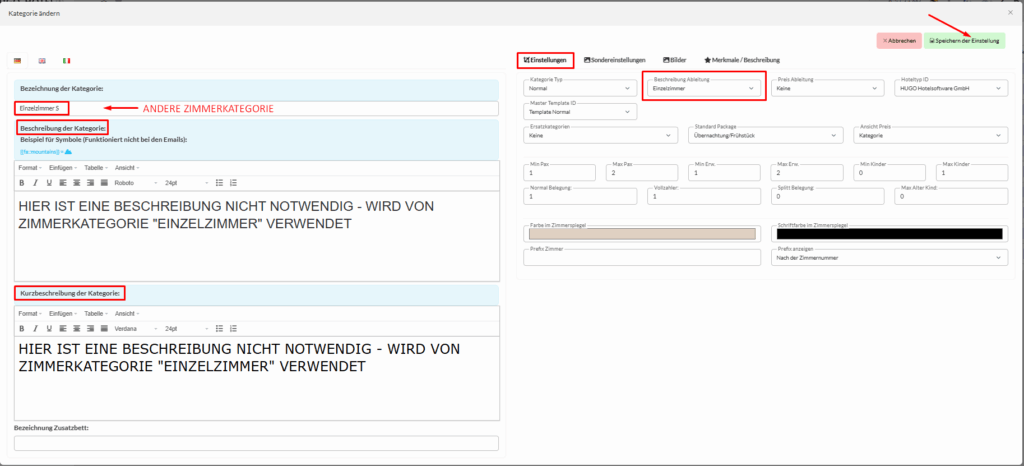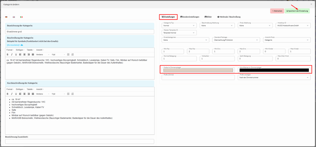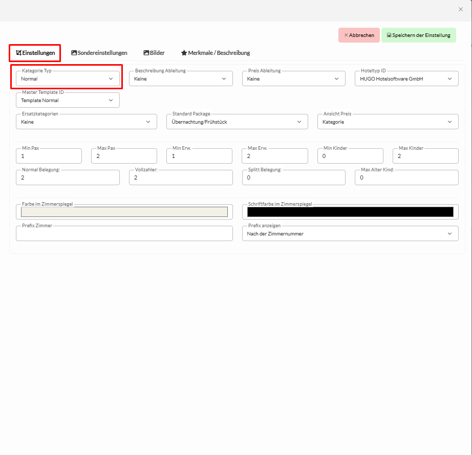 Im Folgenden erklären wir Ihnen die Einstellungsmöglichkeiten innerhalb einer Zimmerkategorie.