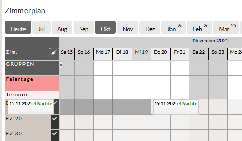 Auch hier verhält sich die Sortierung gleich wie die Sortierung im Zimmerspiegel, mit dem Unterschied, dass es sich nun um die Zimmerkategorien und nicht jedes einzelne Zimmer handelt.