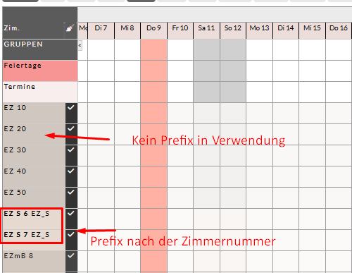 Die hinterlegten Präfixe werden Ihnen im Zimmerspiegel und bei den Tagespreisen wie folgt angezeigt.