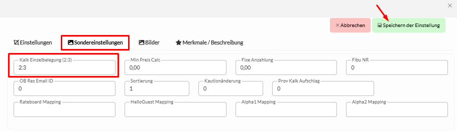 Die Einstellungsmöglichkeit „Kalk Einzelbelegung (2:3)“ ist gleichzusetzen, der Einstellungsmöglichkeit „Einzelbelegungsregel“ innerhalb eines Packages.