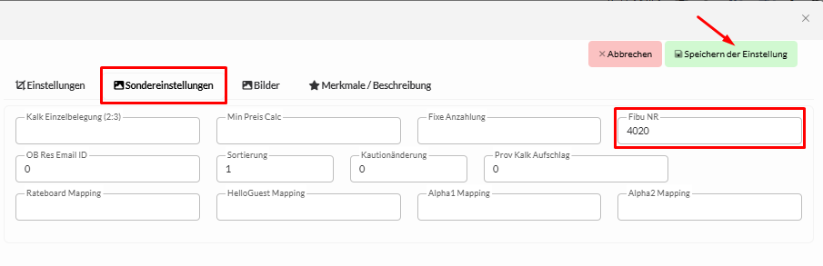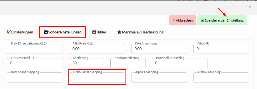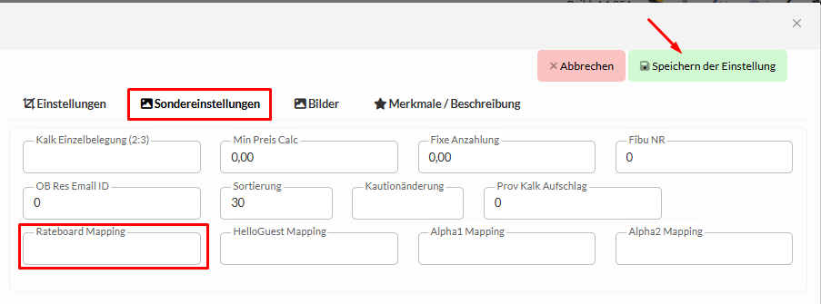 An dieser Stelle wird der Mapping Code, welcher von Rateboard vorgegeben wird, pro Zimmerkategorie hinterlegt.